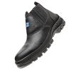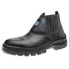 - Bota de couro na cor preta, ideal para profissionais que atuam nas áreas de construção civil, áreas de produção e serviços gerais.