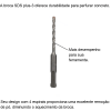 | Conteúdo da Embalagem | 01 unidade - Broca SDS plus-3 c/ 2 arestas de corte Ø 5 x 50 x 110 mm |
