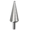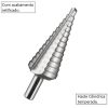 - Broca escalonada cônica é produzida em aço rápido HSS com acabamento brilhante.