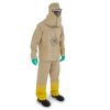 - Conjunto 50 lavadas, composto por blusão e calça, confeccionados em sarja mista com tratamento hidro-repelente, boné árabe, mangas longas do tipo raglan, com fechamento no pescoço em velcro, avental de pvc, calça com reforço em lona de algodão, nylon resinado ou pvc.