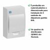 - É produzida em material plástico e dimensionada para instalação de 6 módulos de disjuntores padrão DIN. Acabamentos de porta na versão branca.