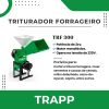 O Triturador Forrageiro TRF 300 da Trapp é equipado com um motor monofásico de 2cv. Ideal para triturar forragens, milho e outros grãos secos. Atende às normas NR-12 de segurança, garantindo operação segura e eficiente.